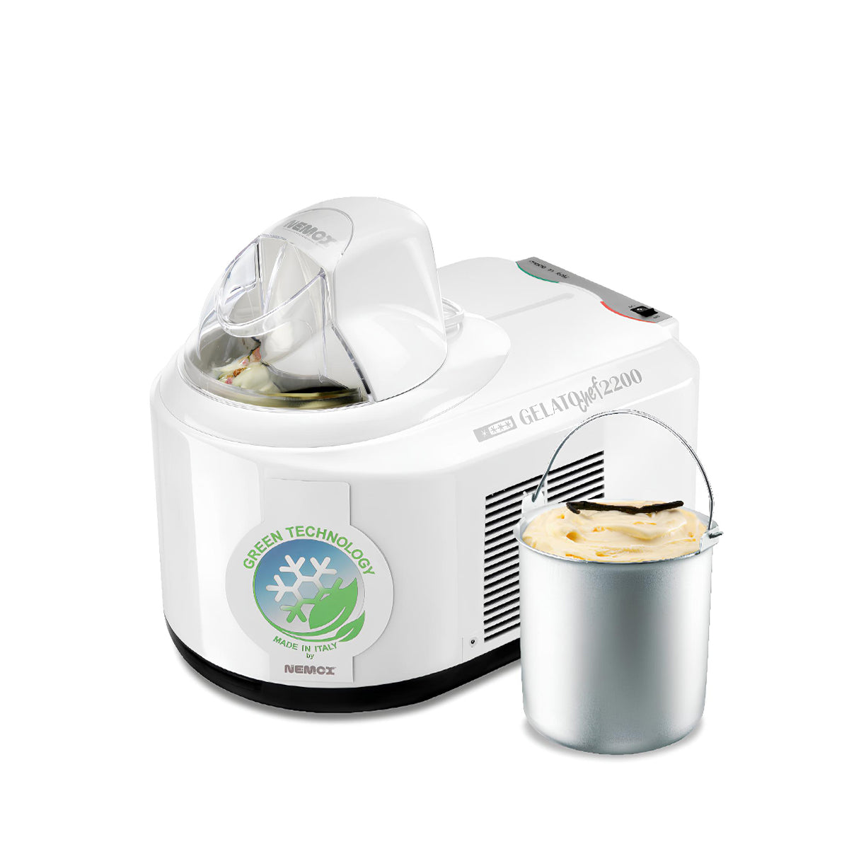 Maszyna do lodów, sorbetów i mrożonych jogurtów do użytku domowego Nemox, model Gelato Chef 2200 i-Green, 800 g