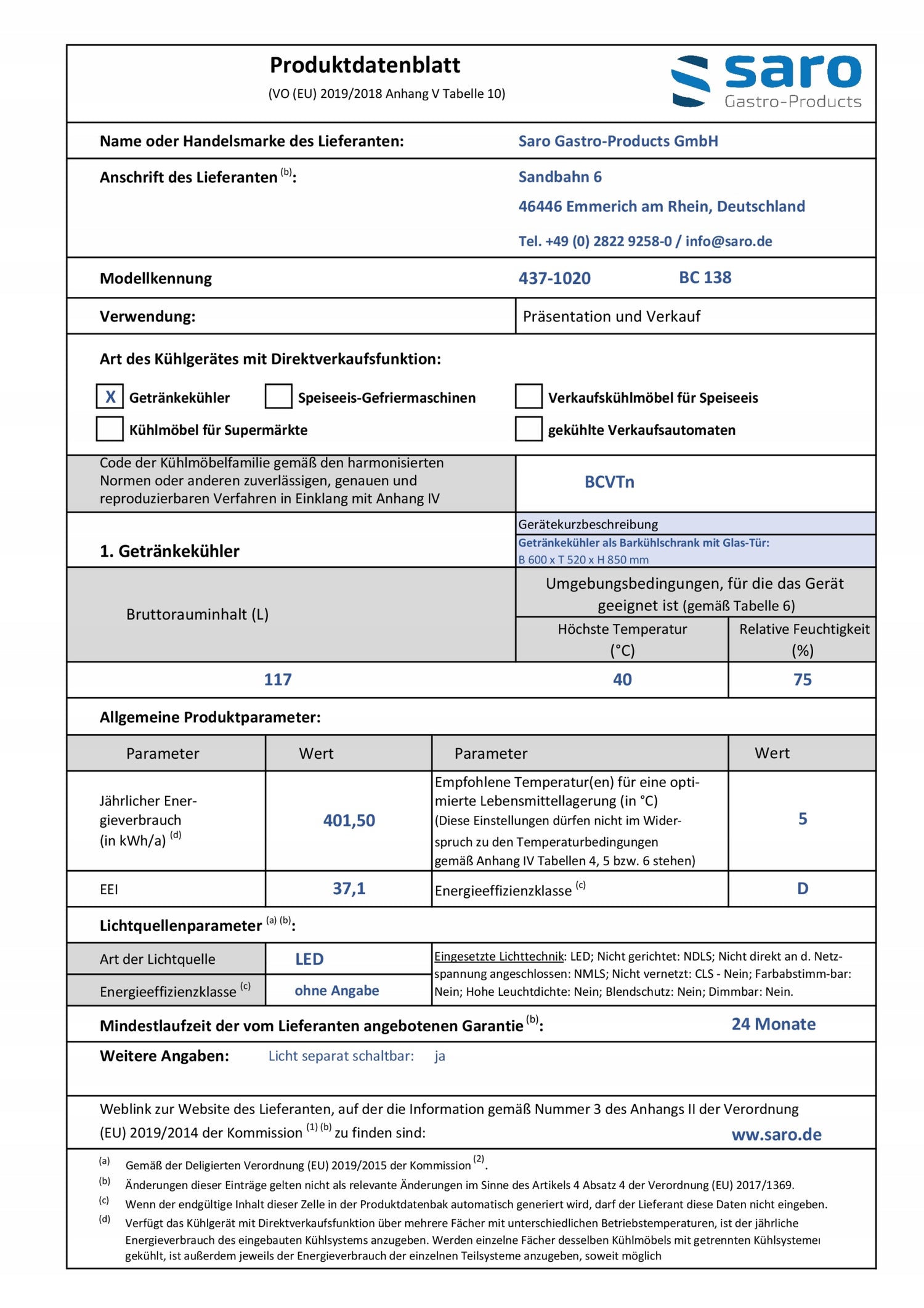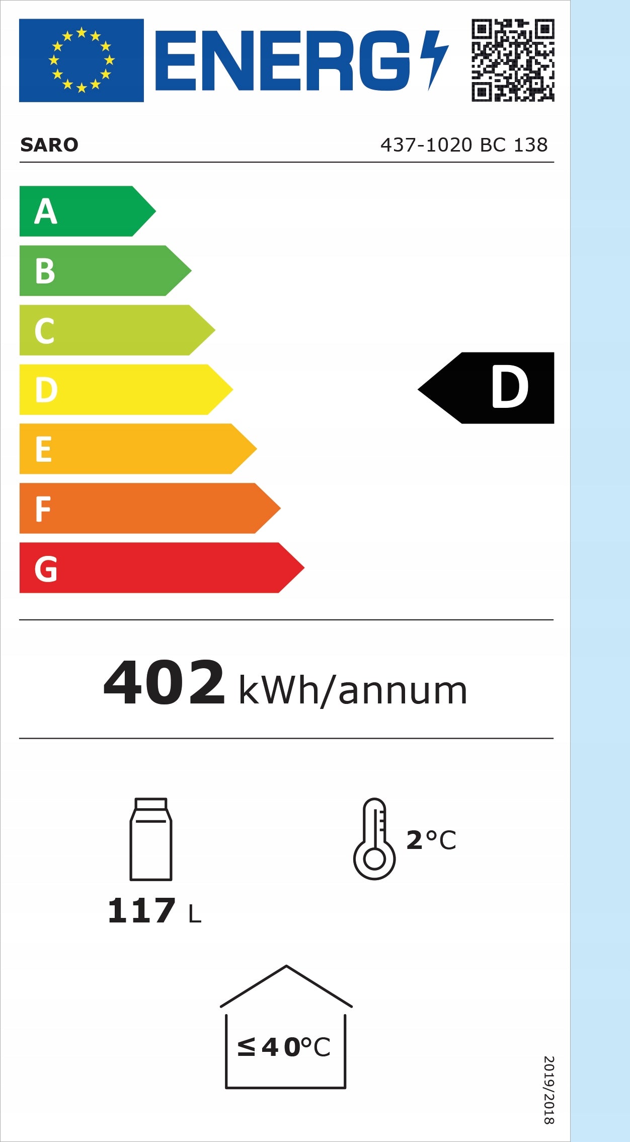 The Saro BC-138 bar fridge is the perfect solution for your bar. It has a capacity of 128 liters, which allows you to store large quantities of drinks and ingredients. Acc sauces are achieved at temperatures from +2 to +10 ° C, and the temperature is easily controlled thanks to the digital panel. Thanks to the double-glazed doors and self-closing functions, your drinks and ingredients are safe and well protected. Set at floor height, the Saro BC-138 bar fridge is ideal for small shops, kiosks, restaurants and bars or other places where drinks are sold. Each Saro BC-138 bar fridge is equipped with 2 removable, verchromte shelves, which allows you to change the height according to the needs of your business. LED interior lighting illuminates the interior of the fridge for easy access to all products. Adapt the Saro BC-138 bar fridge to your needs thanks to the adjustable feet.