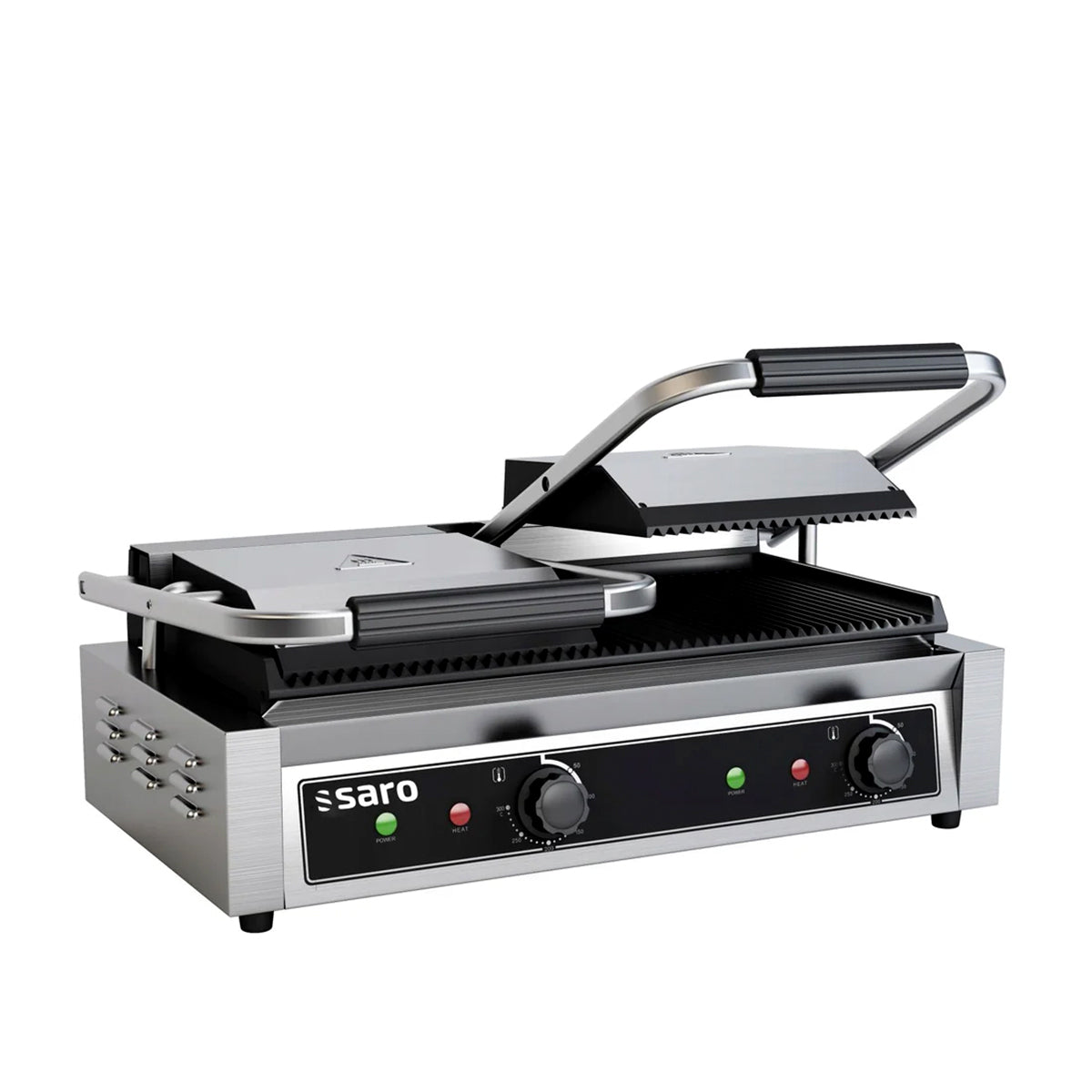 Saro double cast iron contact grill, grooved plate, model PG 2