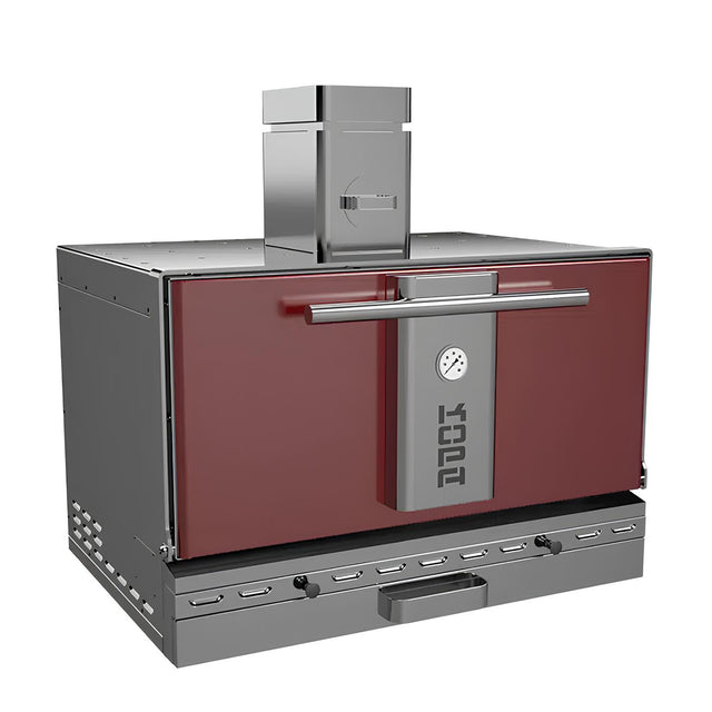 Przy rozpalaniu ognia w piecu grillowym Kopa ciepło reguluje się za pomocą dwóch przepustnic. Otwórz obie podczas rozpalania; po osiągnięciu żądanej temperatury zamknij dolną przepustnicę i reguluj ciepło górną. To takie proste. Możesz stale monitorować temperaturę za pomocą wskaźnika na drzwiach pieca.