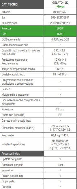 - Control and regulation system of the freezer motor with electronic inverter; the inverter also allows you to change the number of revolutions of the blade (from 60 to 130 rpm) to fully customize the preparation.