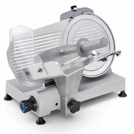 The Sirman Smart 250 slicer is a professional device designed for precise cutting of various products. Equipped with a painted aluminum body and anodized aluminum components, it ensures not only durability but also an aesthetic appearance.