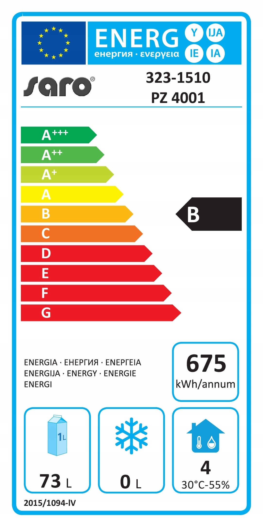 • Energy efficiency class: B (spectrum from A+++ to E)