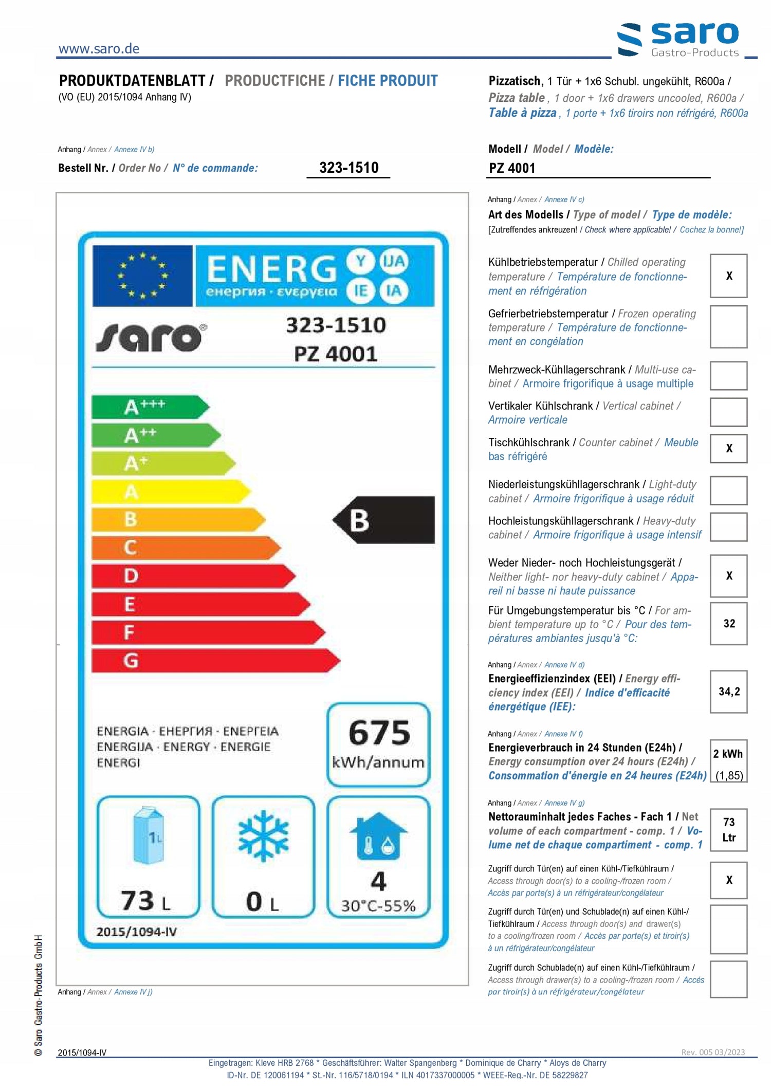 Pizza table, 1 door + 6 drawers, Saro, model PZ 4001