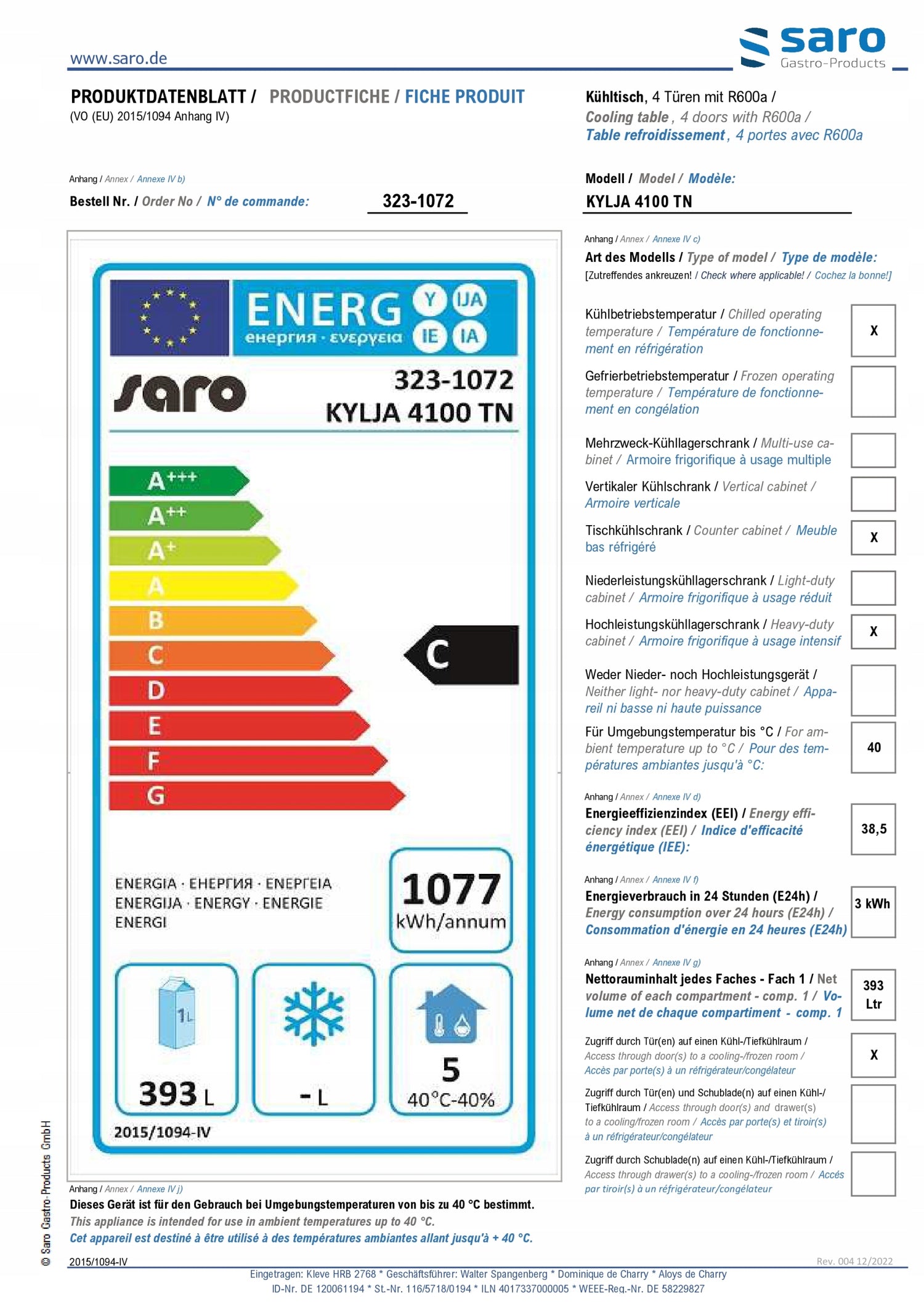Refrigerated counter 4 doors Saro, model Kylja 4100 TN is backordered and will ship as soon as it is back in stock.