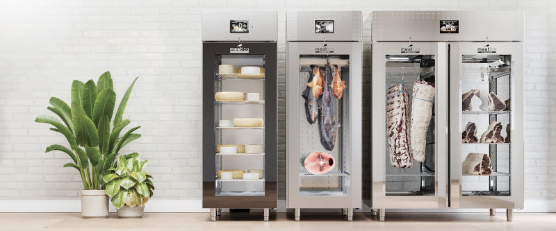 Linia „meat” jest idealnym narzędziem dla tych, którzy chcą poświęcić się wyłącznie peklowaniu mięsa w bezpieczny i profesjonalny sposób. Coraz więcej restauracji i rzeźników decyduje się dziś na bezpośrednie śledzenie procesu dojrzewania i dojrzewania swoich kawałków mięsa, aby zaoferować swoim klientom produkt wyjątkowy i najwyższej jakości.