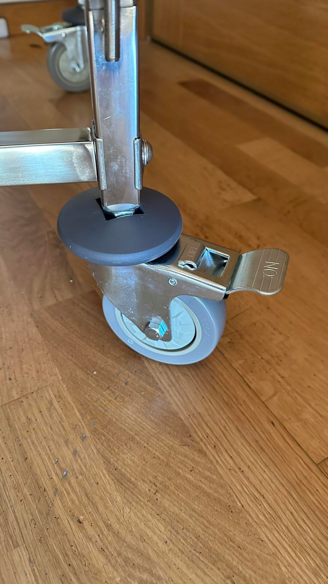 - 4 płynnie obracające się kółka (2 z hamulcem postojowym)